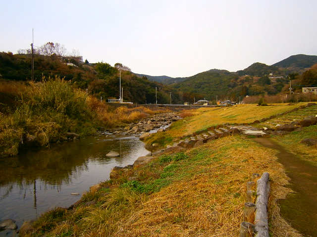 神浦橋の手前に案内があります。河川公園、棚田にいけるルートです。