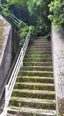 参考にして何とか50分ほどで高浜ダムに降りついた。最後は細く急な石階段。棘のある草もあったりするので注意
