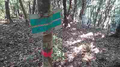 地からいきなり直登して一つ目の無名のピークに行く辺りも結構きつくて分かりにくい。墓地に一個だけ黄色いテー