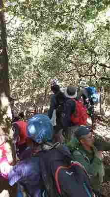 盛況。はるばるとこのように遠くの鶴山展望岩コースに参加されて感謝します。とりたてて難所という箇所はないけれども、
