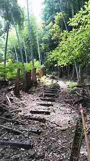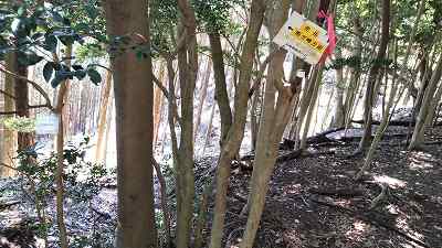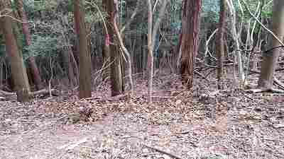 大変険しいというか歩きにくい。まるで城山の城塁を歩く感じ。途中にはイノシシのヌタ場