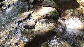 ルート途中に「左熊が峰,直進北兜」という案内があり、左へと降りる。10分ほどで沢に