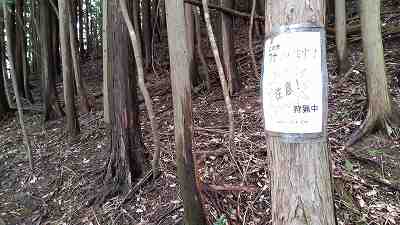イノシシによる被害を受けてか、10mも離れていない場所には罠も仕掛けられていた。