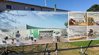 全天候型こども遊戯施設という完成予想図が掲示してあった。工事中のわき道を通っ