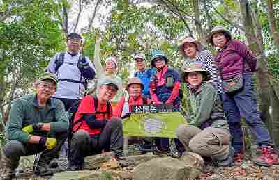 砂防ダムから松尾岳,佐敷岳&寺岳へ男女5名づつ合計10名の精鋭部隊。一般的には、サイクリング道路沿いにある松尾岳登山口