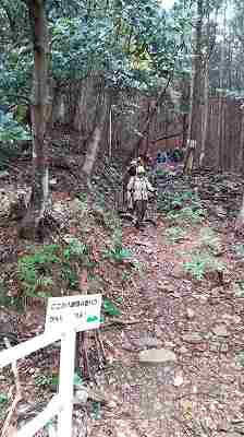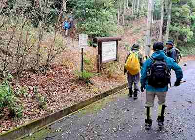 口からスタート。落ち葉が前日の雨で適度に湿っており歩きやすくなっていた。団体だ