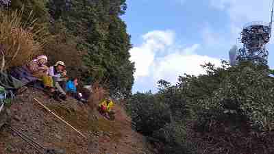 方面を眺めながら休憩を終えた頃 2班の方たちが登ってきた。立て看板に「スズメバチに注意!」と