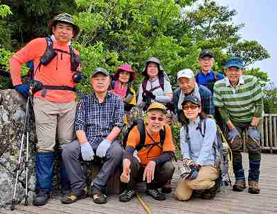 山頂に着いた。3つ目の山は晋賢岳。最後が水洗(みざら)山。13名でのんびりゆっくりと4山縦走。