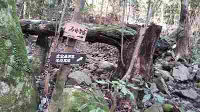 転び岩を過ぎ「みゆき道」を左に登って虚空蔵洞窟を見た後、右尾根ルートで下山。