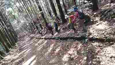 所謂、裏尾根と言われるルートでの岩屋山登頂。一般参加1名含む合計18名で大宮町集合で登り始める。